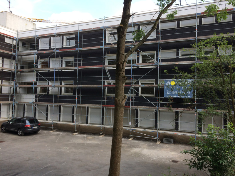 Einrüstung von Bestandsgebäuden für Umbauarbeiten, Dach- und Fassadenarbeiten, sowie als Schutzgerüst zur Erstellung von Neubauten für altengerechtes Wohnen, Kindertagesstätte und Hotelbetrieb.